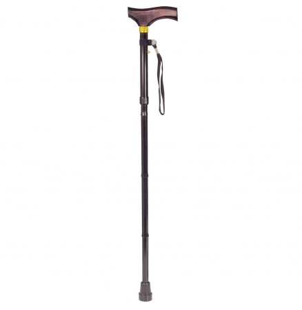 Extendable Plastic Handled Walking Stick With Engraved Pattern In Brown