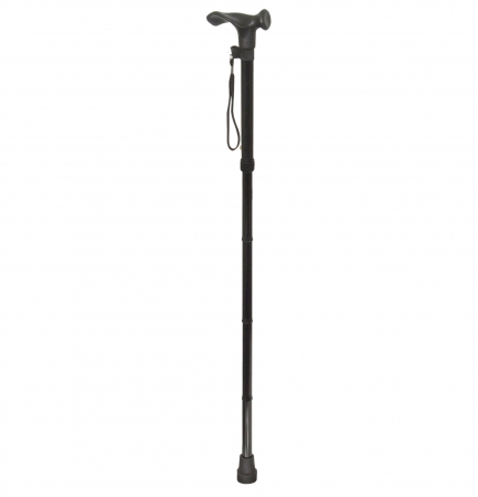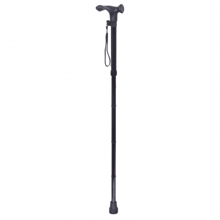 Extendable Plastic Handled Walking Stick With Engraved Pattern In Black