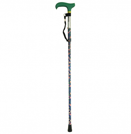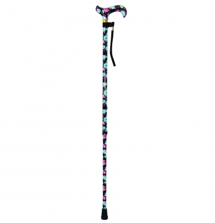 Ergonomic Handled Walking Stick with Deluxe Printed Design - Black Gloss - Left Handed